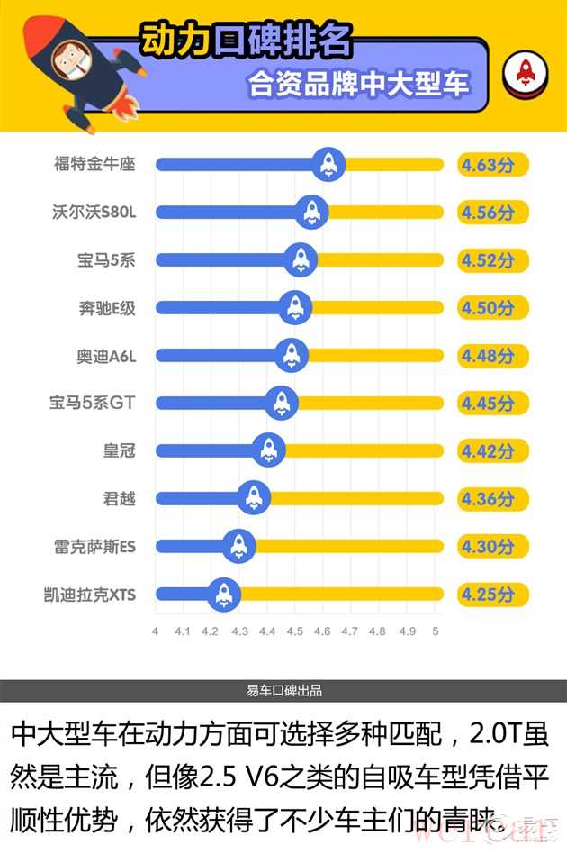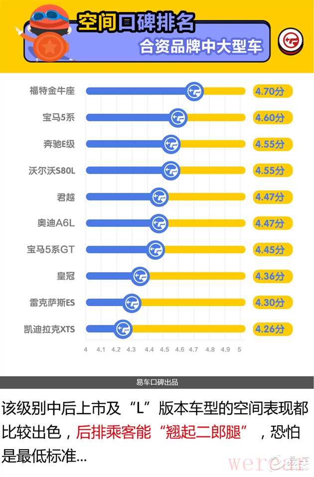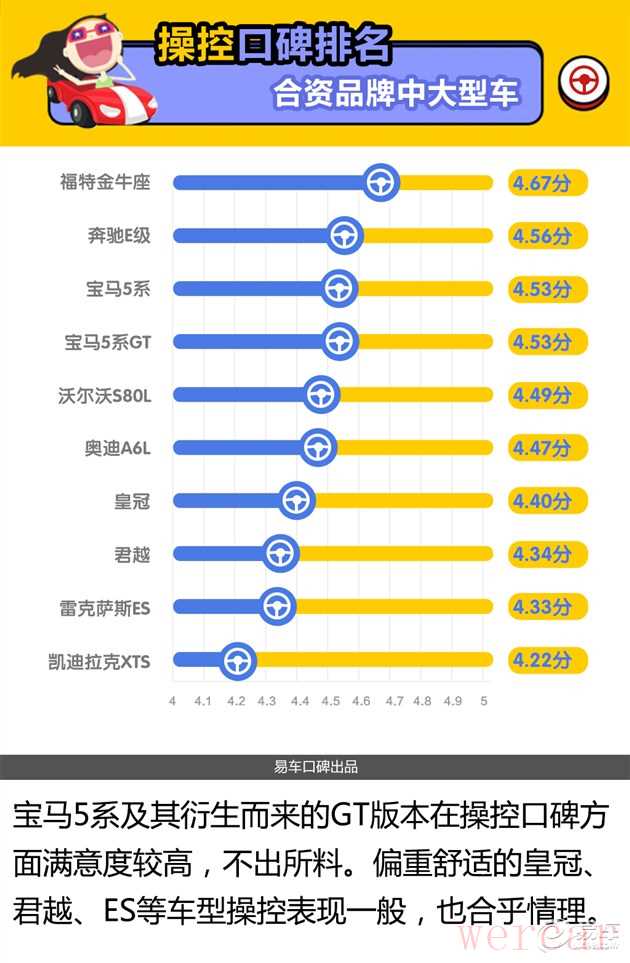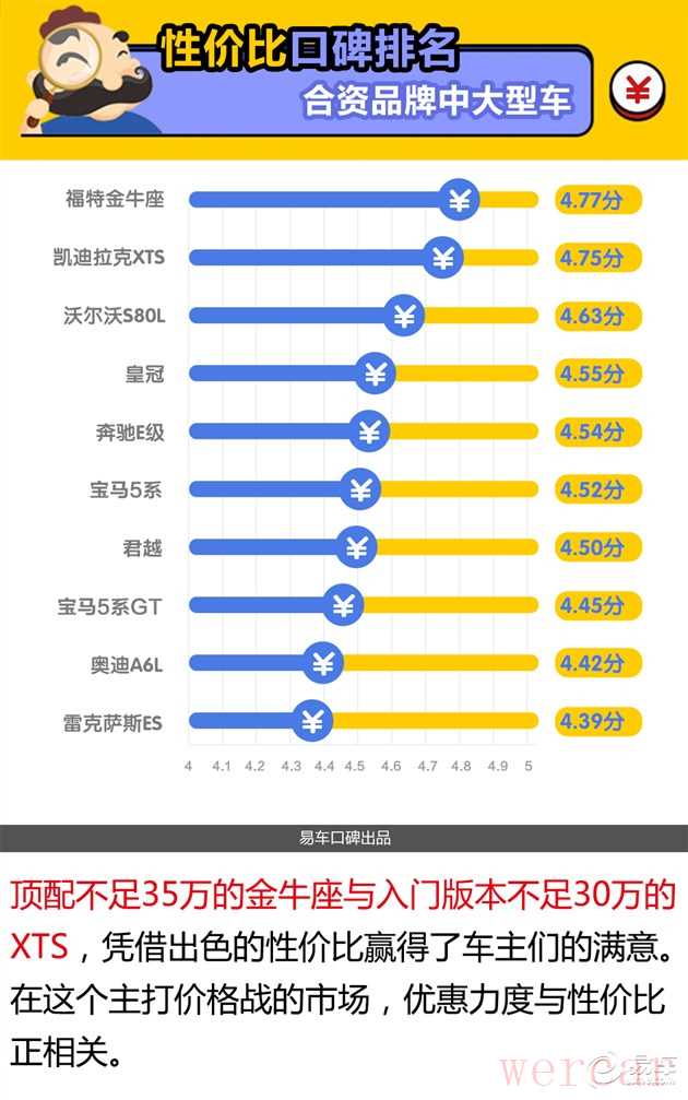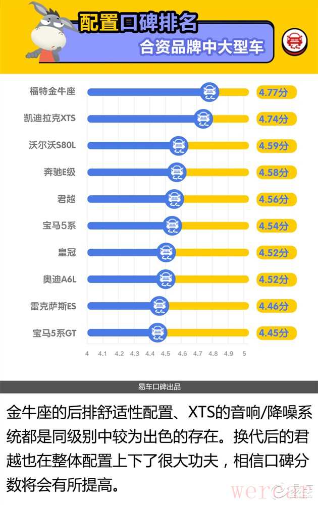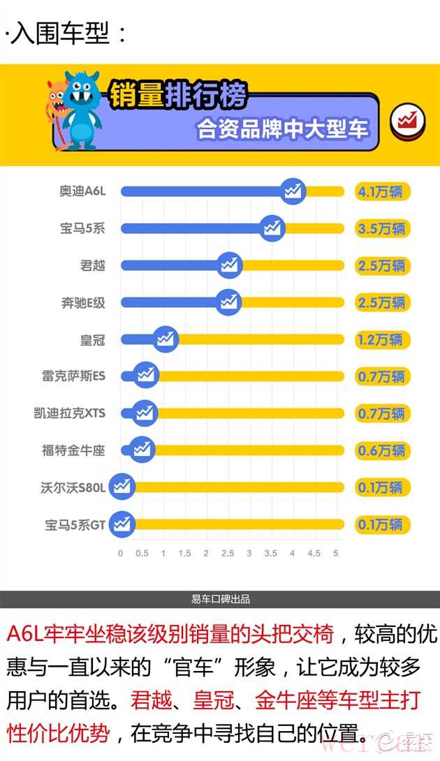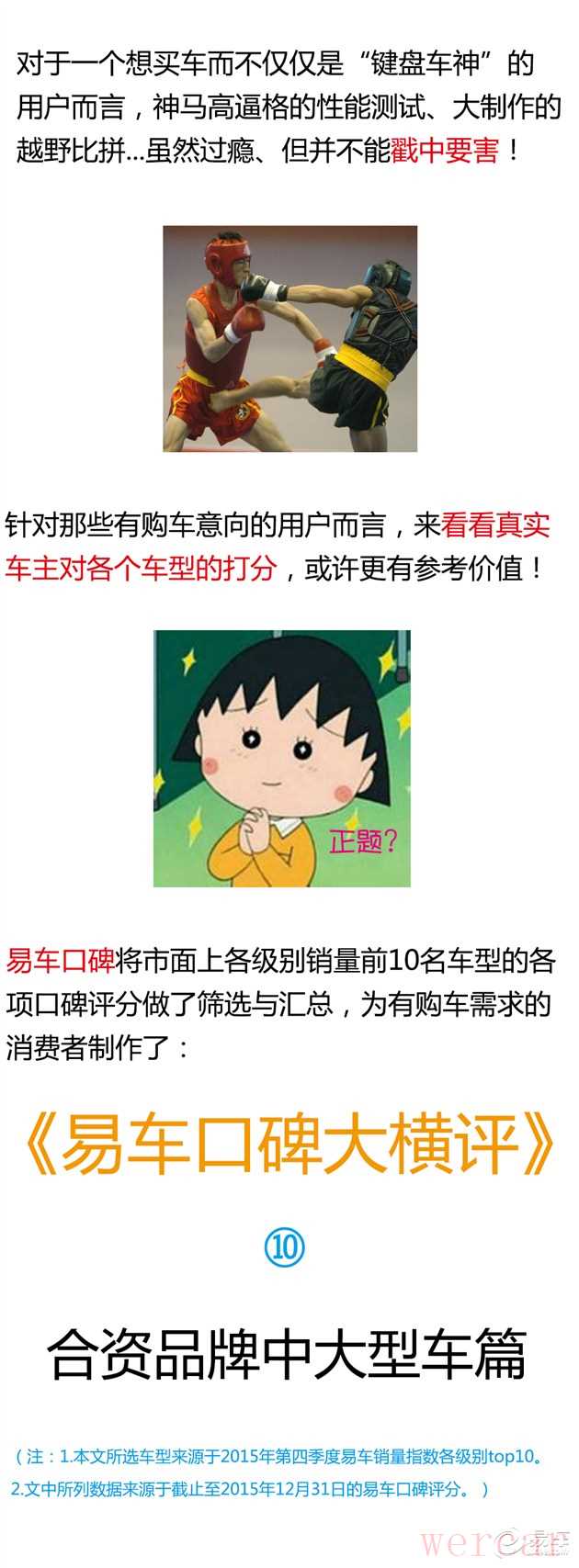我们来分析一下易车口碑大横评中“合资品牌中大型车”这个细分市场的普遍情况。