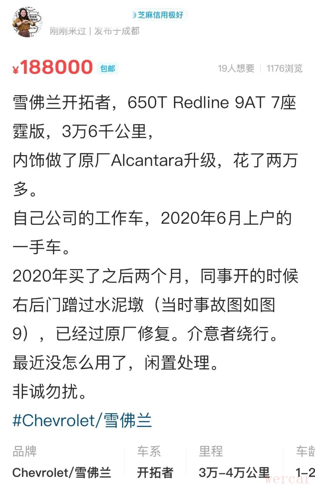 4、关于开拓者,我其实请了一位朋友来给它评估过,毕竟算是事故车,我评估过心里有个数。感谢这位和我同姓的朋友,免费帮我仔细评估之后给我了许多中肯的建议和意见。他当时非常遗憾错过了这台车,因为出过事故,中间商其实也不是很好卖,他也建议我自己慢慢卖。
