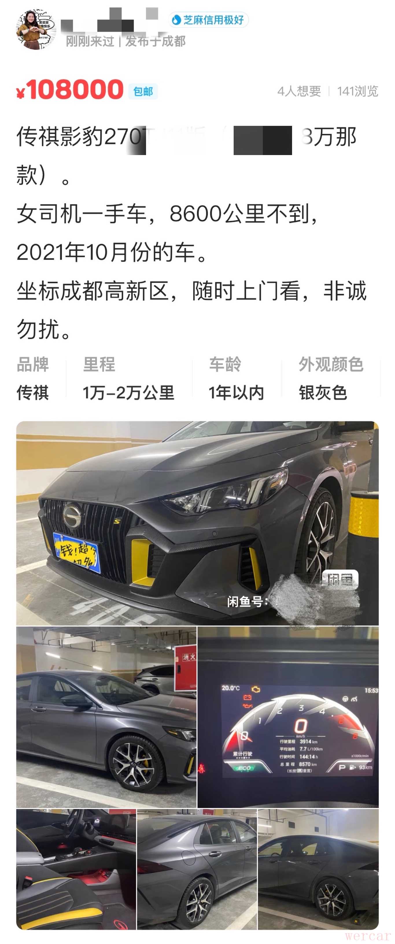 5、期间总共超过十位某鱼用户向我咨询了这台车,感觉上靠谱程度超过一半。其中,有两位已经谈妥了价格,一位因为老婆反对而作罢。另一位因为当时疫情防控原因来不了成都只能放弃。