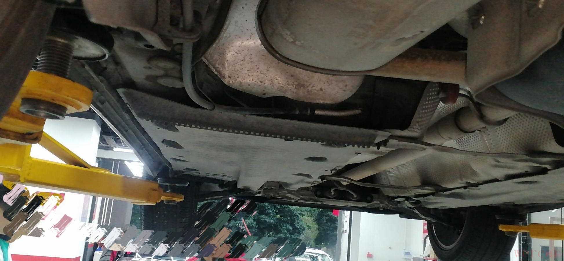 去附近的修理厂上举升机,底盘的灰土泥巴很多,看来平时的路况环境不怎么样啊!当然,八个年头了,也不能跟新车比。