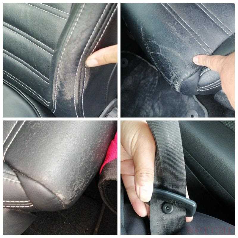 镜头拉近观察细节,侧面边缘掉皮褪色,前面边缘皮质龟裂,很影响美观呐!包括安全带都有点儿磨的发亮了,你们说是不是调表了?