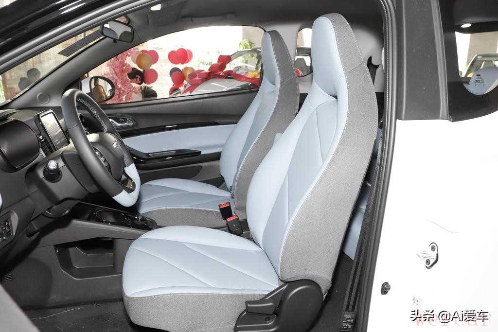 奇瑞小蚂蚁 2022款 甜粉款 磷酸铁锂 半糖版本座舱仿皮座椅,彩色一体的设计,十分年轻有格调,座椅很软和,乘坐起来舒适,主驾驶位手动4向调节,并带单侧扶手,而副驾驶位电动四向,使用起来挺便捷的,而中控下方还掏了储物格子。