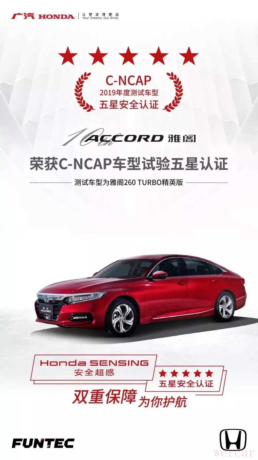 在车辆安全性能上,第十代雅阁全系车型应用ACE高级兼容性车身结构,采用高强度钢材,扭众多转刚度提高32%、弯曲刚度提高24%,被动安全性能全面提升,此外搭载碰撞发动机罩自动弹起的PUH行人碰撞防护系统、驾驶员注意力水平监测系统、CMBS碰撞缓解制动系统、RDM车道偏移抑制系统、带LSF(低速前车跟随系统)的ACC主动巡航控制系统、360度自动泊车系统……有着强大的技术保证,第十代雅阁在2019年荣获C-NCAP五星安全认证,是情理之中的事。