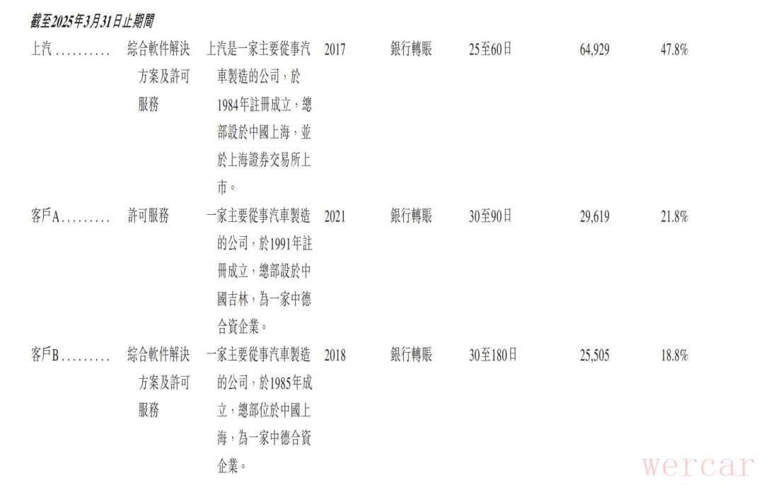 具体原因,主要是斑马的客户来源比较固定。根据招股书显示,斑马收入来源有接近一半来自于公司控股股东的上汽。此外的营收中,也有4成的来源比较明确。虽然具体客户信息做了模糊处理,但不难猜出客户A为一汽大众,客户B为上汽大众。这一大客户结构从2022年至今未发生明显变动。