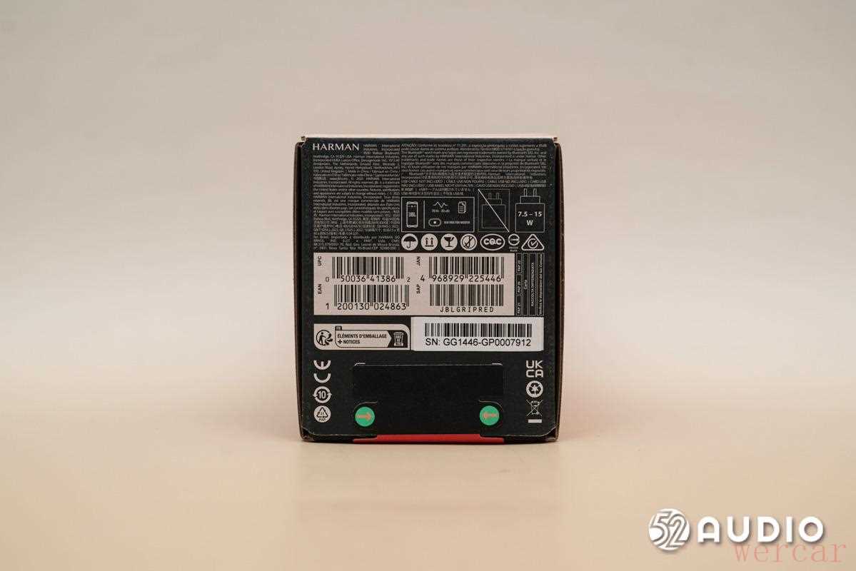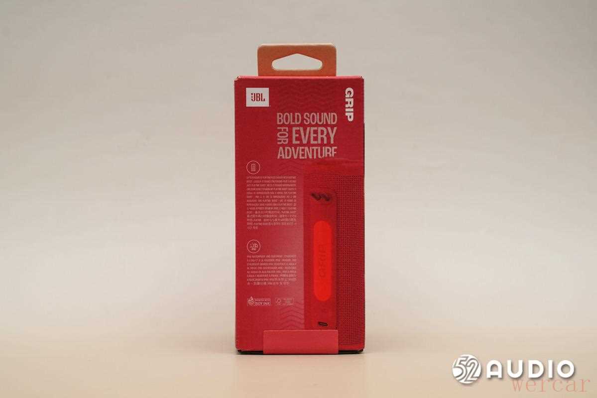 JBL GRIP 霓虹罐的外包装背面一览,标注产品的主要特征。