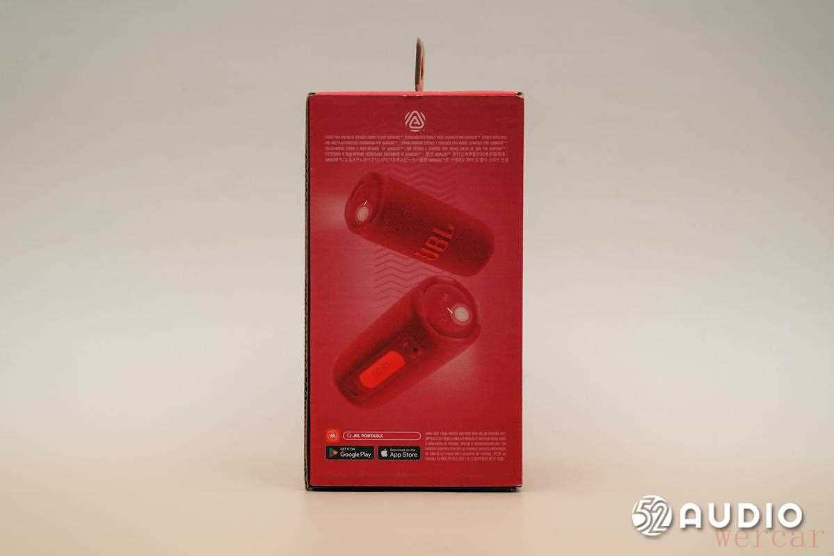 右侧面绘有产品图及 App 应用程序「JBL Portable」的下载方式。