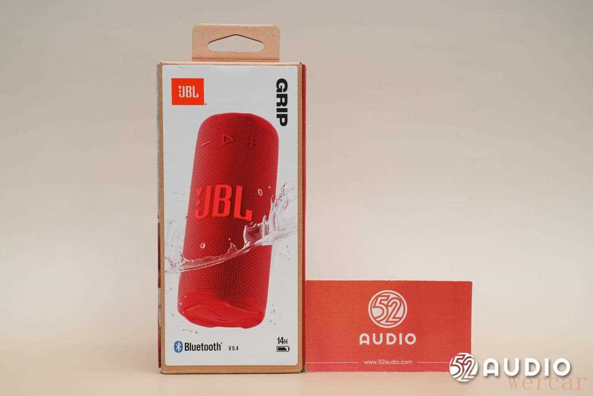 虽为全新产品线,但 JBL GRIP 霓虹罐的外包装整体依然保持 JBL 产品的潮流、时尚的个性风格。包装正面绘有产品的主图,以水花元素标明音箱的 IP68 防尘防水特性,并标注蓝牙 5.4、14 小时续航的性能特征。