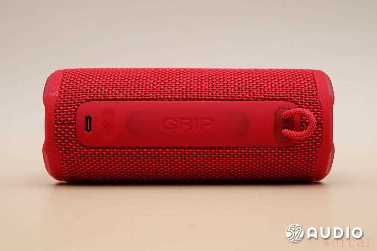 JBL GRIP 霓虹罐音箱 USB-C 充电接口细节。