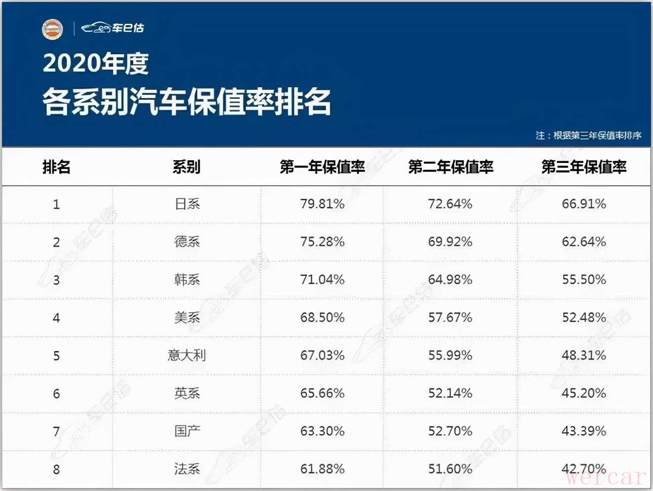 一、保值率方面,国产品牌不如合资品牌。按照国内二手车整车情况来看,国产车的保值率确实普遍比合资车要低。全国工商联汽车经销商商会联合车e估发布的《2020年度汽车保值率报告》里面说到:国产车第一年的保值率只有63%,仅仅排在法系车前面,排名倒数第二。排名第一的是日系车,第一年保值率在80%左右,第二名是德系车,第一年保值率也有75%左右。三年保值率就更夸张了,国产车三年保值率只有50%左右,而日系车三年保值在75%左右,5年保值率也有65%,这样一比较,差距就更大了。