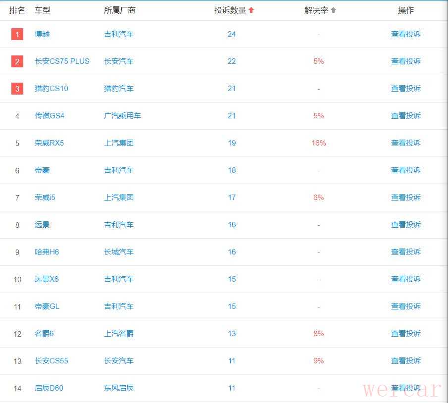 二、品控方面,国产品牌还需继续努力。下图是2020年,车主之家对各大国产品牌汽车的投诉数量的统计,我挑几个典型的给大家讲一讲。