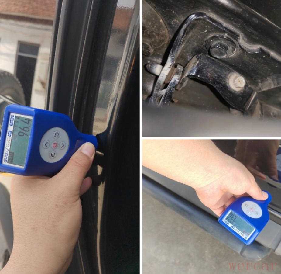 接着检查外观其它漆面,发现左后门喷漆修复,B柱正常无修复变形痕迹,左后叶子板正常无修复,C柱正常无修复。