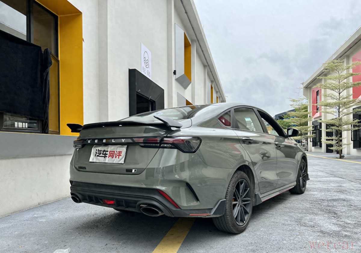 当然,整车也通过不少熏黑套件来营造运动风,比如熏黑处理的品牌LOGO、进气格栅、多幅式轮毂、门把手、后视镜、后保险杠等,甚至连尾部“缤瑞”等字体也经过了熏黑处理,加上溜背的造型、疾驰的高腰线、双排气口以及夸张的大尾翼设计,可以说运动氛围相当到位。而且,新车还采用了“狠绿”的车漆颜色,独特之余又不乏一丝凶狠的感觉。最重要的是,这个车漆看起来像贴了膜一样,可以带来不错的视觉效果。