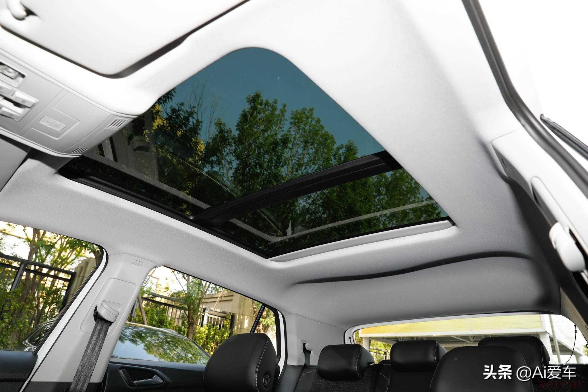 上方还有一块超大的全景天窗的配置,有着不错的透光性和舒适性,同时显得更有档次了。