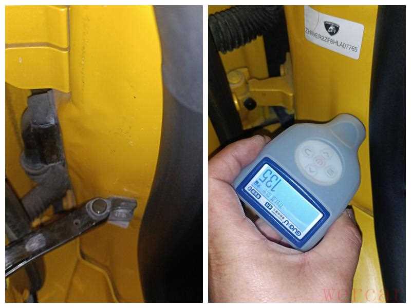 不过车身左侧证实有刮蹭事故,车门钣金,腻子厚度1000多μm,车门螺丝拆装,螺丝支架磕碰掉漆!