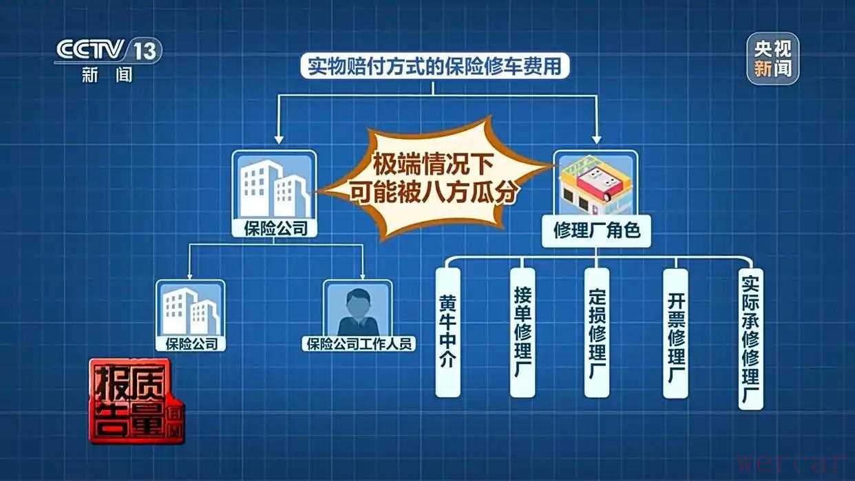看过的朋友应该知道,一辆宝马车的维修,一共有三家修理厂参与瓜分费用,一家负责开票,一家负责定损,一家负责实际维修。在维修过程中,车在两个修理厂之间拖车和行驶6次,而有些更换的部件是拆车旧件,以极低的成本来保证利润,维修质量可见一斑!而极端情况下,可能八家人员或机构参与瓜分。