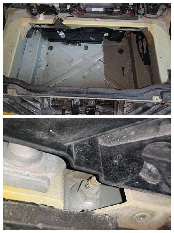 尾部后备箱盖的铰链螺丝拆装了,但车尾涉及到改装,所以不确定是不是事故造成的,看看后备箱里面的框架情况吧!