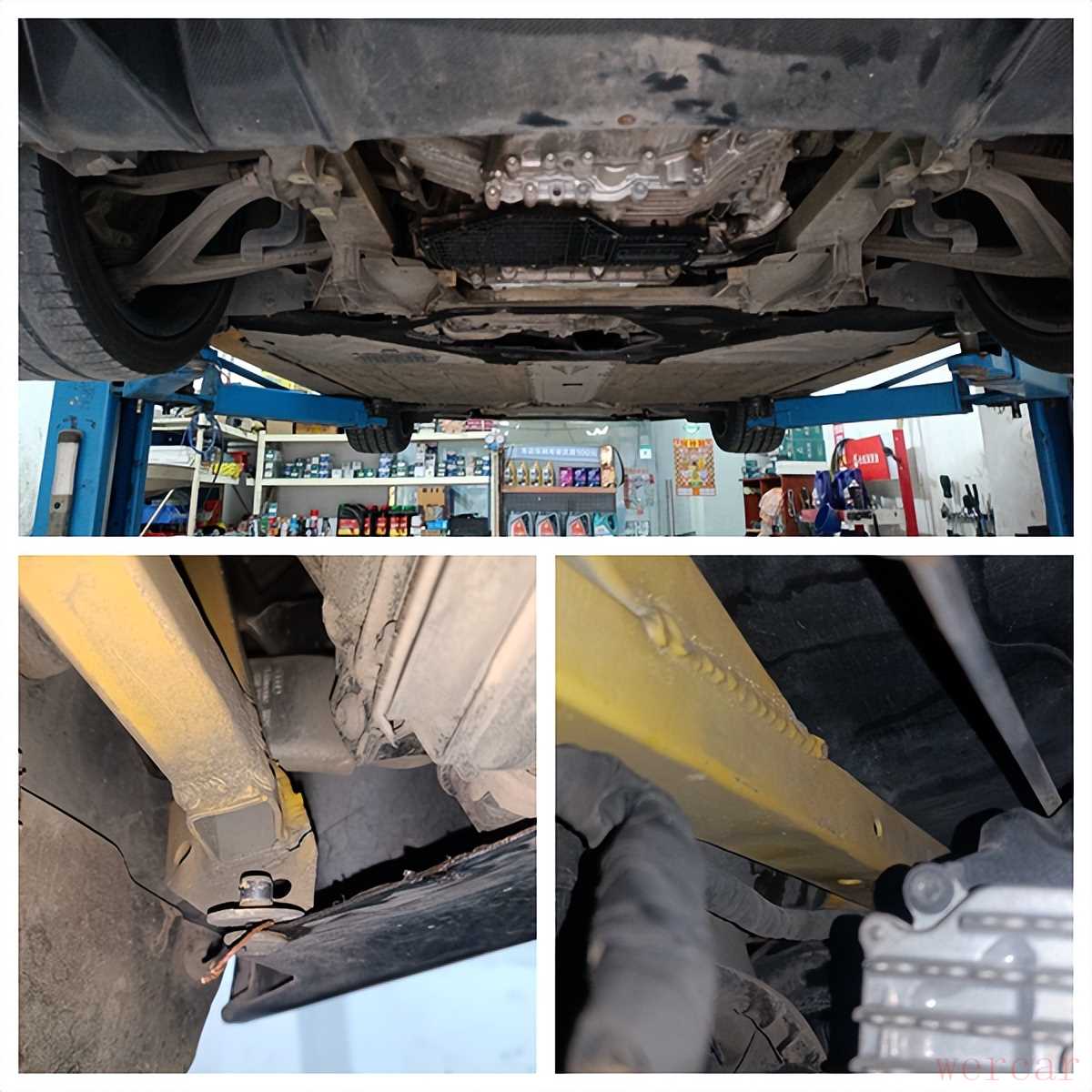 剩下的外观就是简单的喷漆,就没必要详细介绍了,来看底盘!刚升起来就看到左前翼子板骨架下部的支架变形断裂,好家伙,隐藏的够深呐,不升底盘还看不到!这应该是托底造成的。