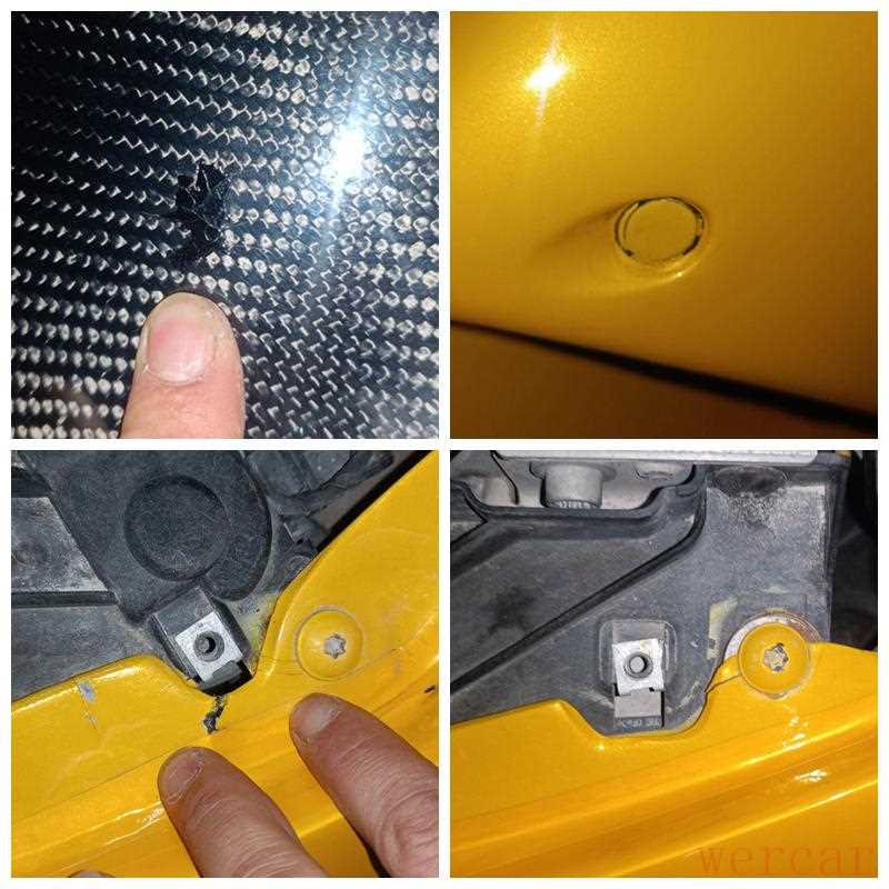 继续来看外观,前杠喷漆,漆面破损,磕伤掉漆,固定螺丝位置裂口,一副破败的形象!