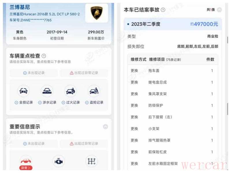 一辆宝马就有这么多的猫腻,那么一辆超跑又该有多少操作空间呢?想想就可怕!前两天我们就检测了一台兰博基尼飓风,这台超跑也是维修了很多地方,下面我们就把具体的车况分享给大家,或许可以管中窥豹,看看一台光鲜照人的超级跑车如何变成被人所嫌弃的破烂车。