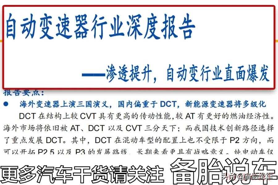 前面提到过的行业研究报告有讲过的:不少整车厂,比如说大众,为了打破爱信在AT变速箱上的掣肘,都在积极地研发DCT。