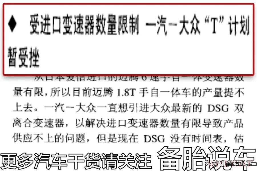 《汽车情报》期刊上面也有篇报道的,《受进口变速器数量限制 一汽-大众“T”计划暂受挫》。
