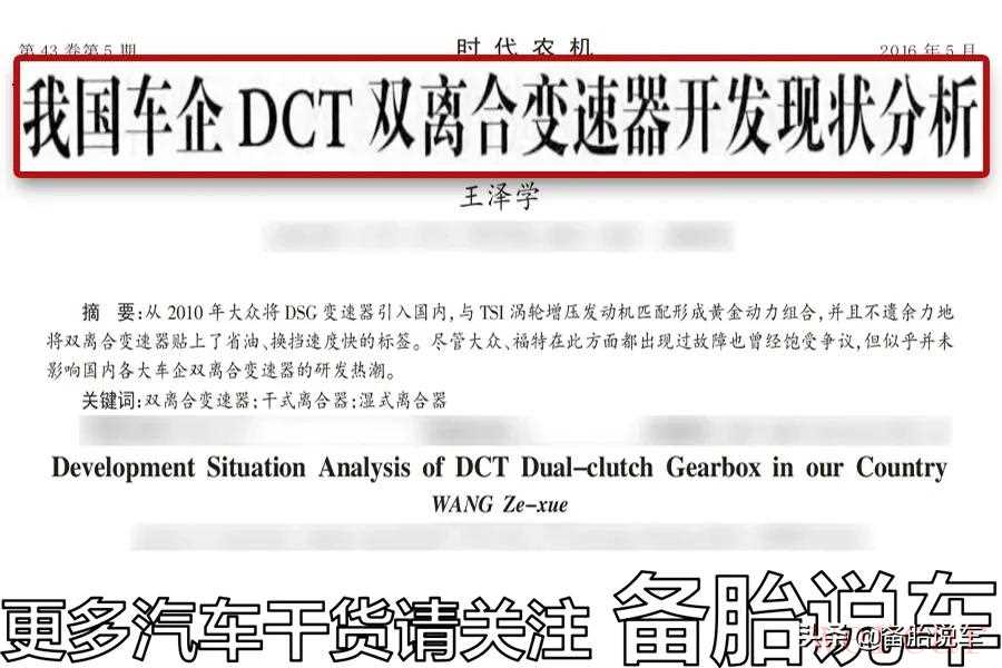王泽学.我国车企DCT双离合变速器开发现状分析.时代农机,2016.