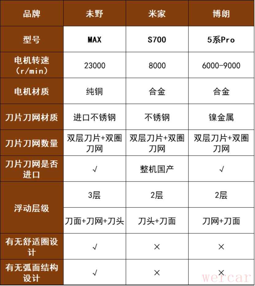 二、性能参数未野、米家、博朗剃须刀怎么样?好用吗?对于这三款产品感兴趣的小伙伴不妨参考如下性能参数。