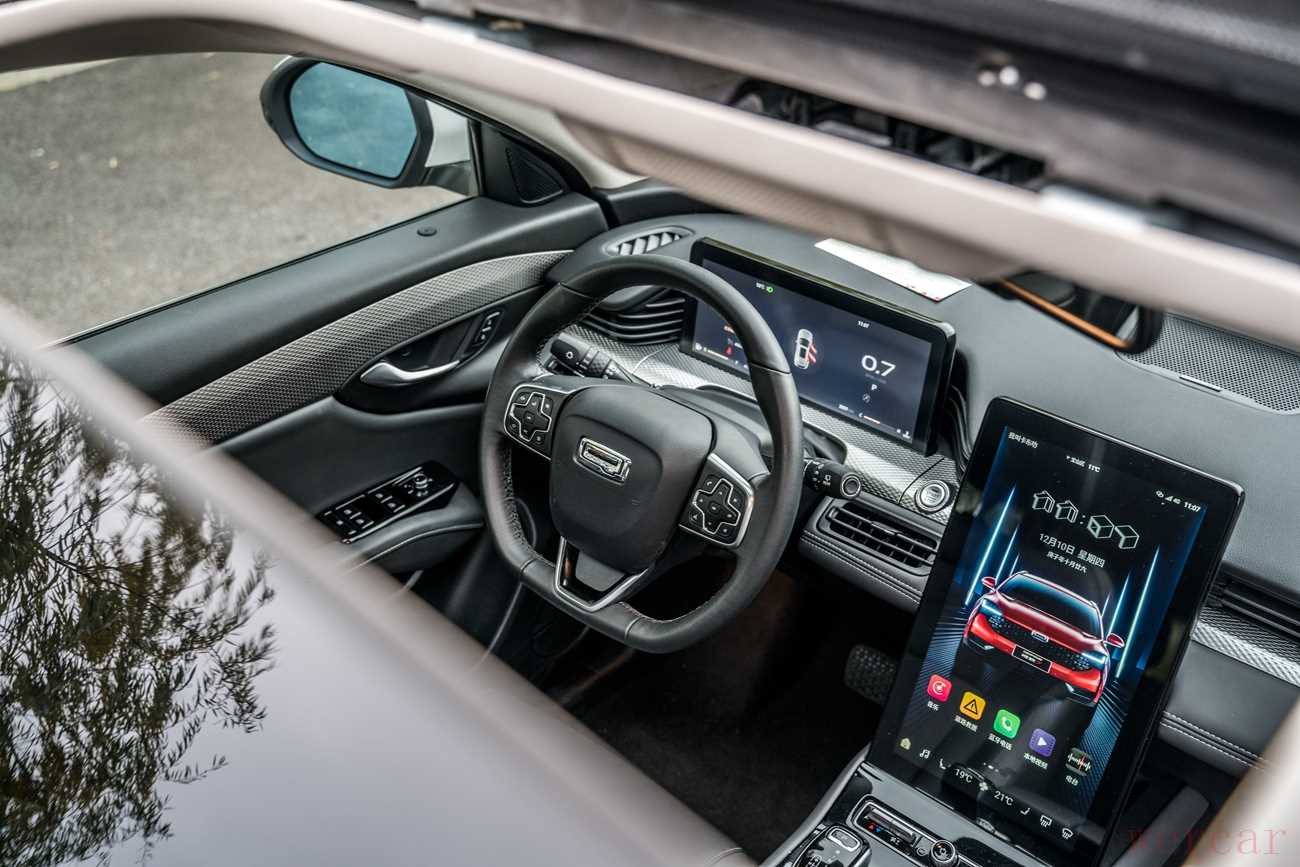 内饰部分表现还是令人满意的,主流的双大屏设计非常惹眼,个人的感觉是比较平直的,相对来说刚硬了一些。不过14.6寸的大屏绝对是亮点,而且整体素质很高,流畅度也处于比价高的水准,和同级别的同类车型相比优势真的不仅仅是屏幕大而已。
