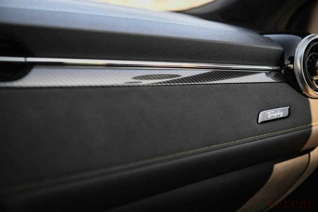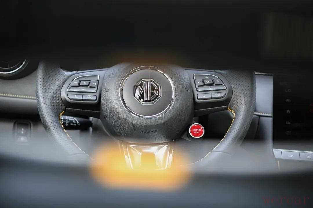 在我看来,2020款名爵6新能源的内饰要比外观来的更到位,气质这一块拿捏的精准无比,碳纤维纹路饰板、Alcantara材质、方向盘上的红色按钮以及运动座椅这四部分渲染了整个运动氛围。