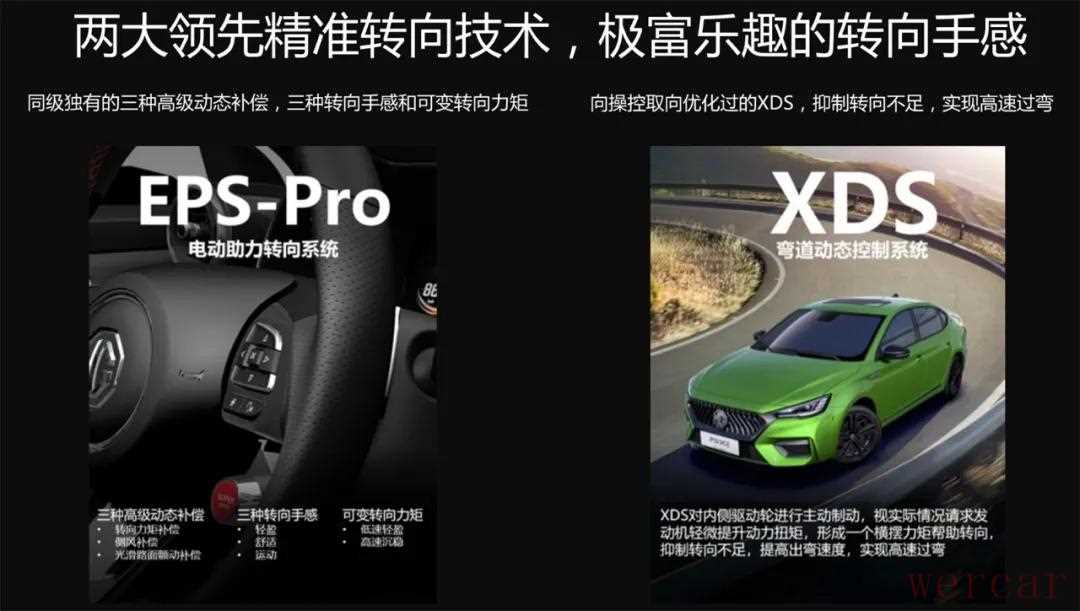 在动态操控方面,新款名爵6的转向系统升级至EPS-Pro的电动助力转向系统,提供了轻盈、舒适、运动的的三种转向手感,还可以通过车身的传感器实现转向力矩补偿、侧风补偿、光滑路面颤动补偿等等的功能。另外新款名爵6也继续提供XDS弯道动态控制系统,对于转向操控都带来了极大的帮助。