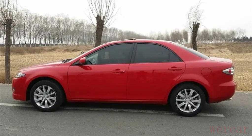 这个车身颜色的马自达六是不是有一种熟悉的感觉,当时有很多婚车就用马自达六,这个颜色红色的。整车的侧面线条比较圆润,外观仁者见仁智者见智有一点值得一提,马自达六是双排气,在当时也是很炫酷的一个设计。