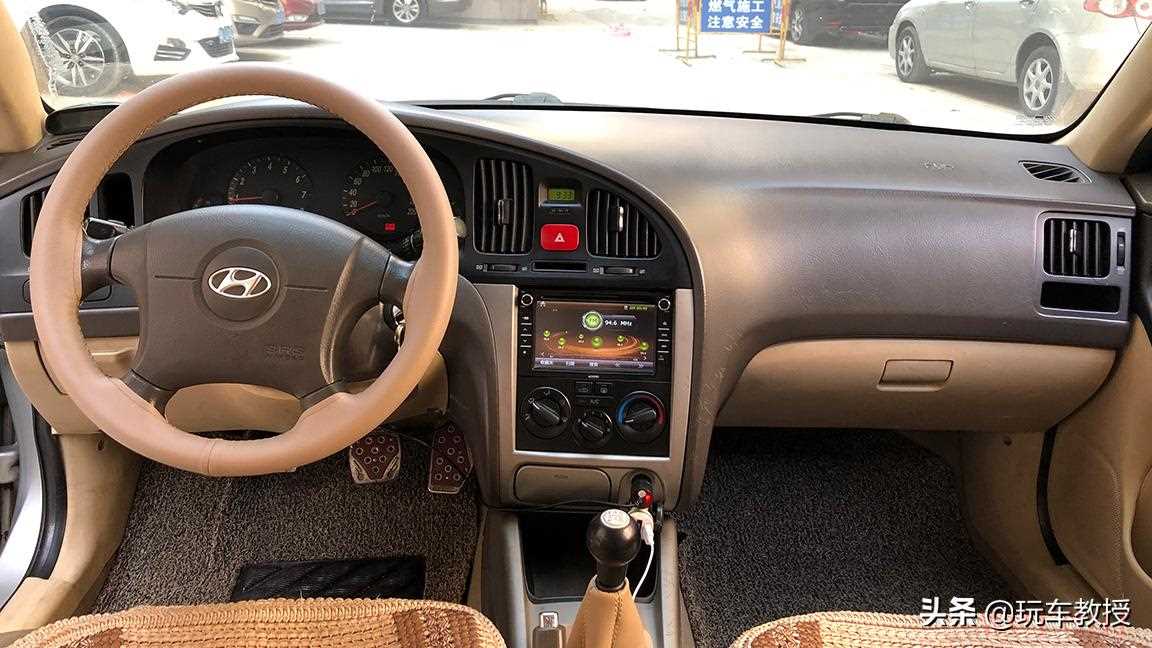 车内同样有磨损,例如副驾前方的中控台表面有许多划痕,米黄色的车内饰板也显得有些年代感,不过依然能看到其整体工艺保留得很好,不存在零件脱落或损坏等,其车内功能配置还能正常使用。而中控台最显眼的屏幕则是后期加装的,原本只是一个收音机,这也算是10年之间汽车发展的差异。