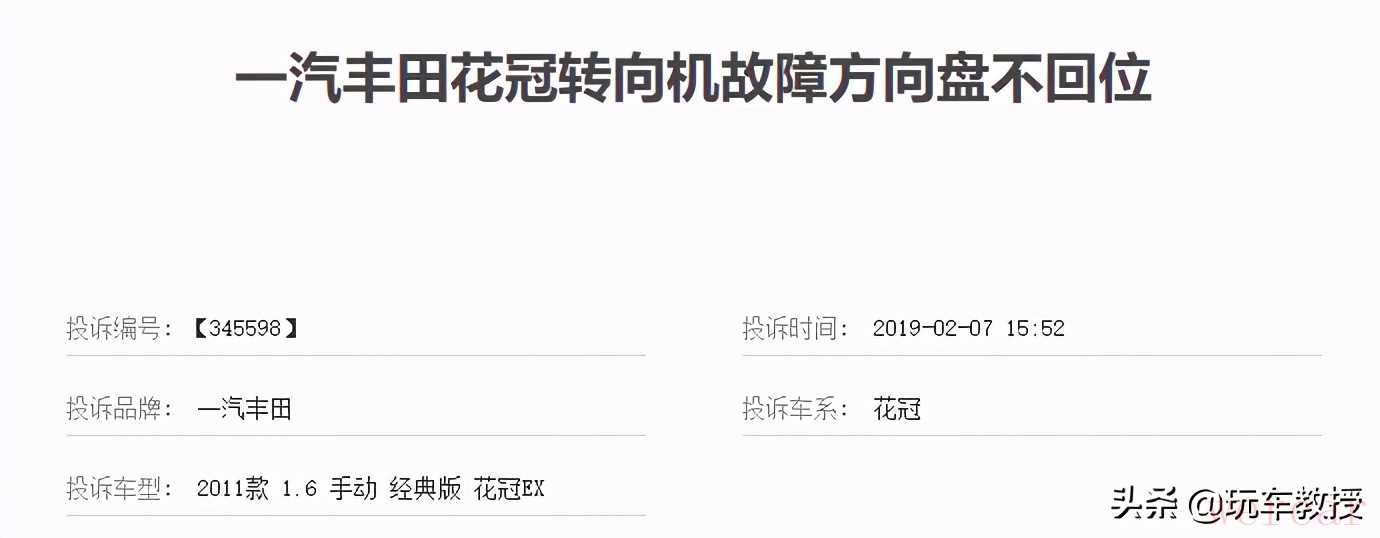 (来自车质网) 对此,教授也在几个汽车论坛搜索了“花冠方向机”关键词,确实真有不少车主在讨论这个问题,其中有一位车主写到8年间已经换了不止一个方向机。由此看来,方向机问题或是花冠的“通病”,而作为一台开了10年的老车,即使目前尚未需要更换方向机,不过有一些小问题已经开始浮现,以后可能得多多注意。