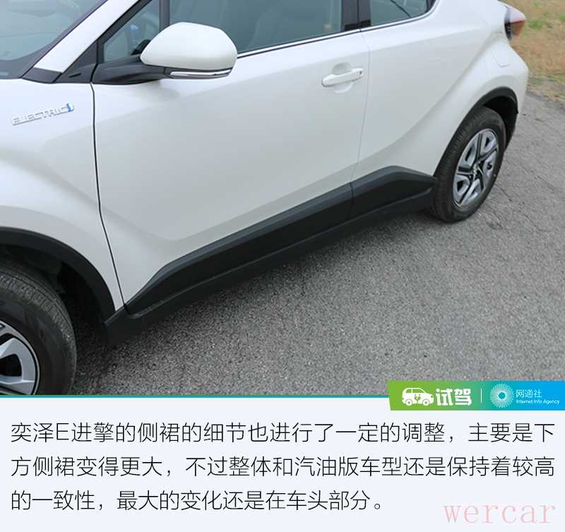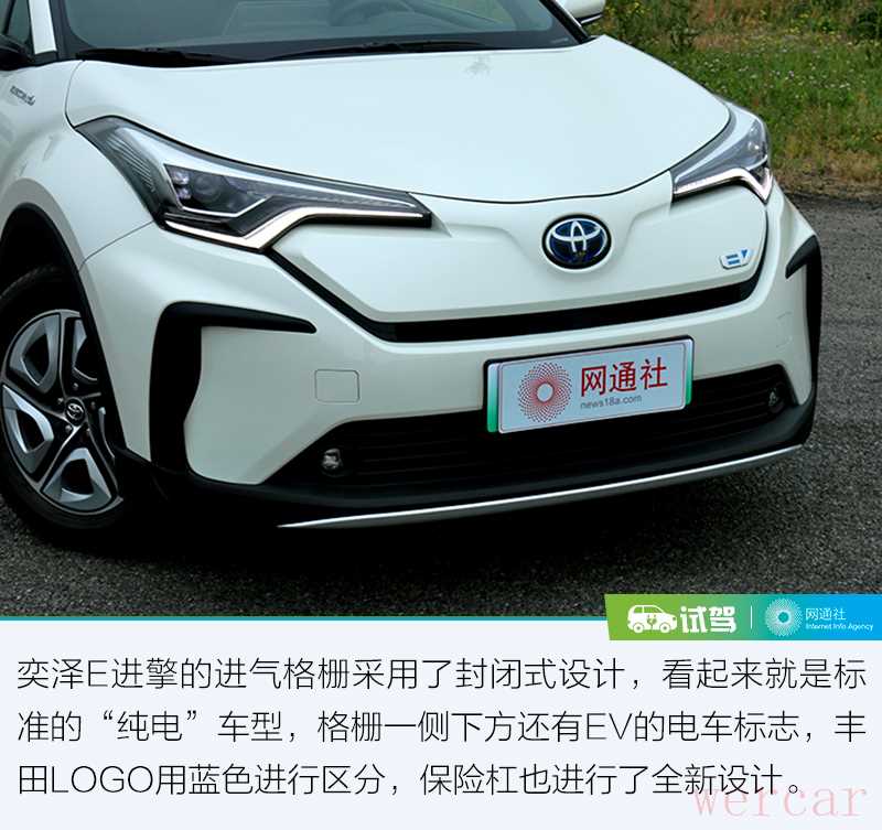 在说试驾之前,我们还是来聊聊这款车的静态部分,虽然奕泽E进擎是一汽丰田的第一款纯电车型,但是它是由汽油版本车型延伸发展出来的,它和之前的汽油版本有哪些不同呢?