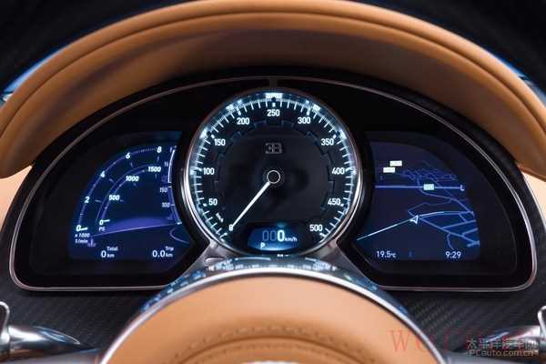 仪表盘中央为传统的指针仪表盘,两侧为两块液晶显示屏,整体造型传统。但是中央速度表表底500km/h的数字还是能让人血脉膨胀。