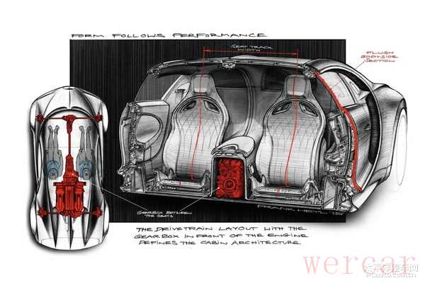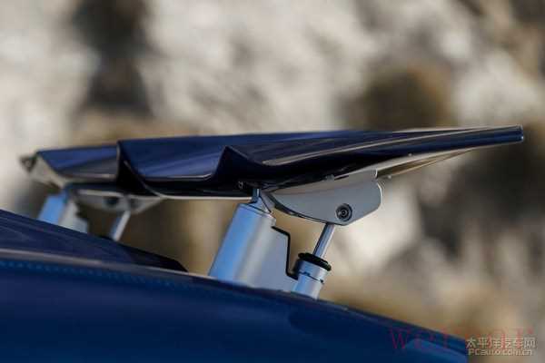 为了更好的散热,大量的空气流经发动机以及刹车盘后从车尾流出,因而车尾采用了大面积的镂空设计。尾灯呈一字型设计,贯穿整个车尾。下方的扩散器为车辆提供下压力。中间四出的排气呈两个倒梯形设计,尺寸相当夸张。