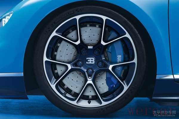 轮胎尺寸为前285/30 R20,后355/25 R21。这套轮胎依然是由米其林为布加迪特别定制的,为了能够将1600Nm的最大扭力通过轮胎传到地面,轮胎与轮毂之间是直接粘合的,以免巨大的扭力使得轮胎与轮毂之间发生打滑。