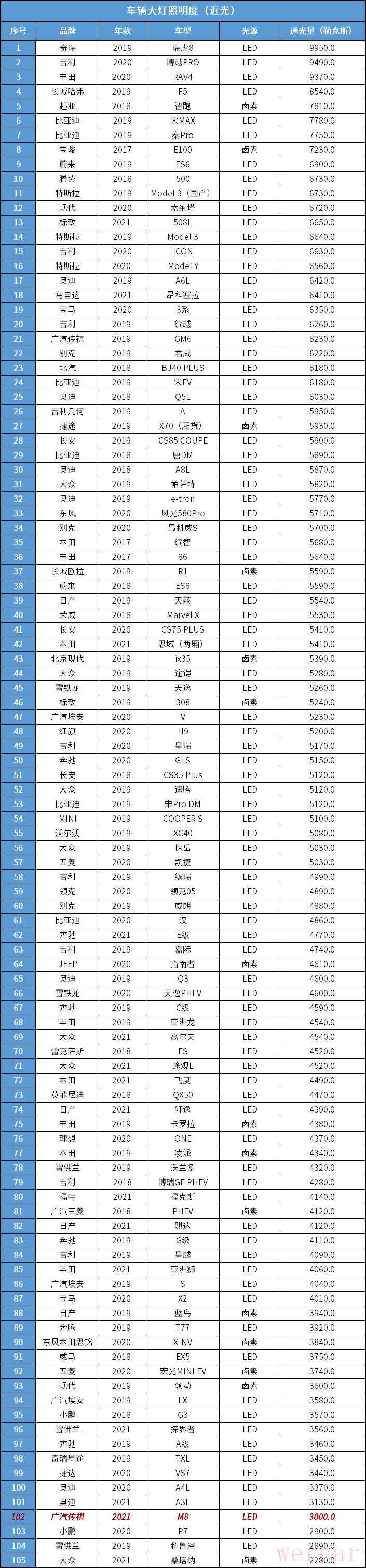 这辆车的大灯是LED光源,最大光照度为3000勒克斯。漆面色差