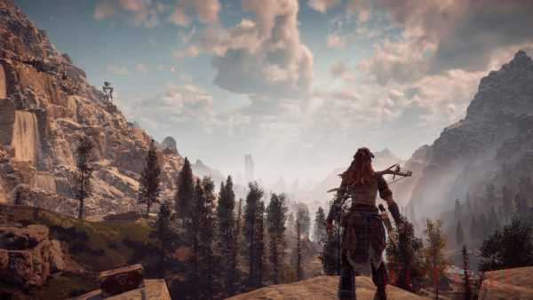 无可否认,《地平线:黎明时分》比其他同类开放世界游戏增加了不少功能,而地图逐步解锁开放的模式令不少人想起育碧,特别是当玩家需要表现出对周遭环境的兴趣而爬到高处的时候。不仅如此,翻越高楼还能把巨型恐龙用上,反观《刺客信条》和《孤岛惊魂》就没有攀山越岭的要求了。