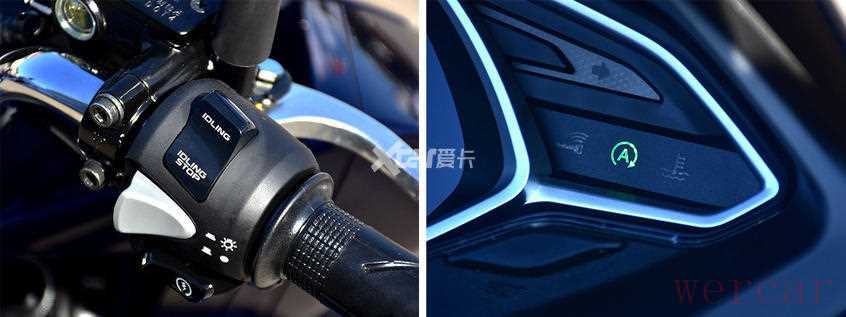 当你通过手把按键打开IDLING STOP按键后,怠速启停功能就将被激活,激活后可以看到仪表盘右侧有绿色“A”提示灯亮起,当你在原地3秒静止不动时,车辆会自动“熄火”,当轻轻转动油门时,车辆会再次静音启动,实际上着并不是我第一次接触本田的怠速启停技术,如果没记错的话,早期的五本睿御110也搭载过相同技术,这项技术的最大特点就是可以节能减排。