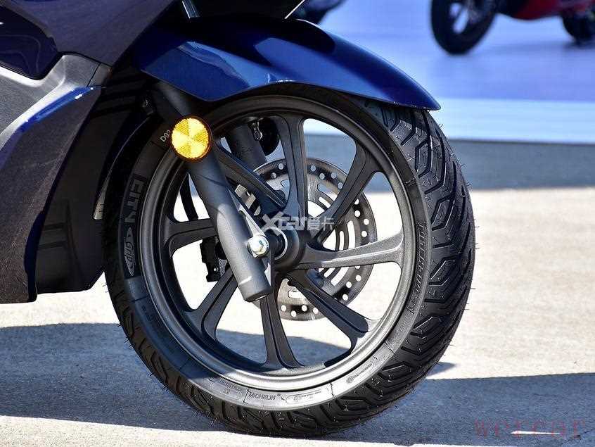 PCX用了通过性更强的前后14寸轮圈设计,这种规格我们很难在同级150cc级踏板车中见到,它既偏向东南亚弯梁的风格,又偏向欧洲大轮踏板的设计。但有一点值得肯定,PCX使用了两条米其林CITY Grip轮胎,这款轮胎可以算是踏板车中的顶级型号,不仅具有出色的耐磨性、防滑性,还具有良好的湿地抓地力,其轮胎规格为100/80 R14,后120/70 R14。