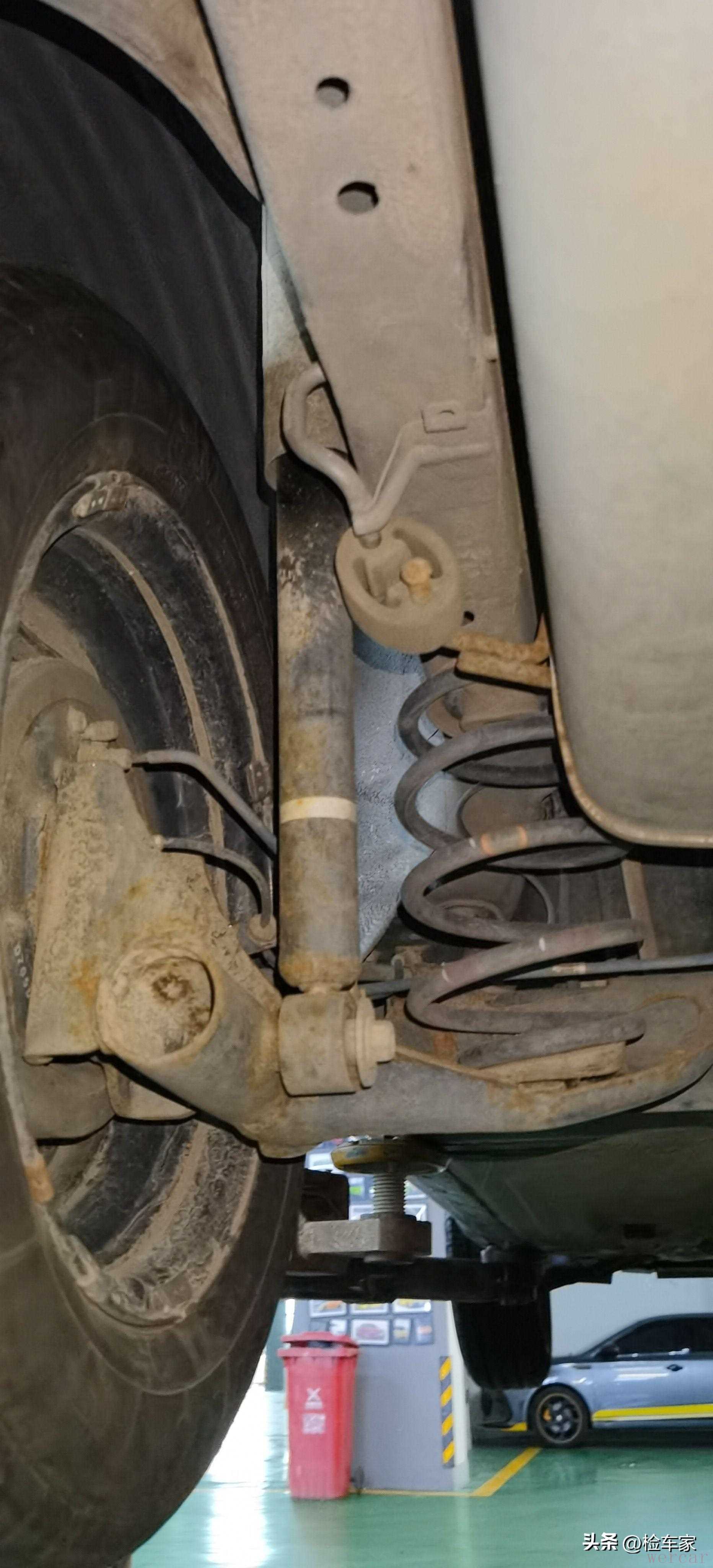 后悬架也多处充满了锈蚀,说明此车的防锈做的不是很好,因为公里数也是太大了,而且悬架处有多处破损,开起来是肯定会有各种异响的。