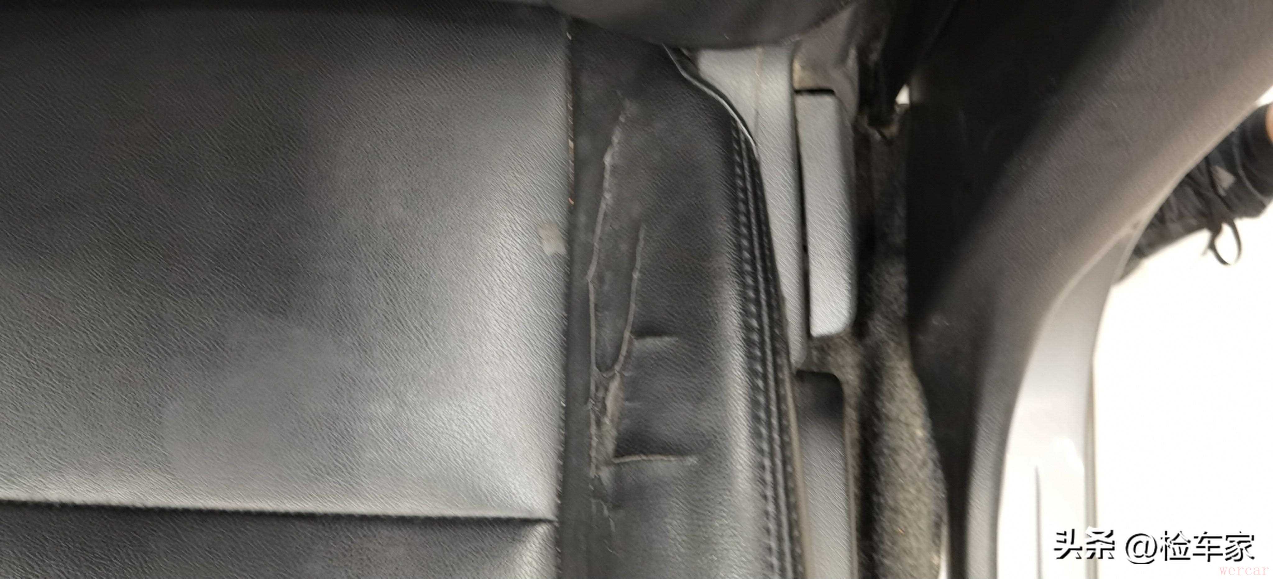 进去车内,如上图所示,9万公里的里程,这个磨损是不是有点太过了?大家经常打网约车的就知道,他们公里数都在十万以里,座椅都有没有什么异常,那么此车的座椅已经磨损到这个地步了,我坚持一开始超过20万公里的推断。