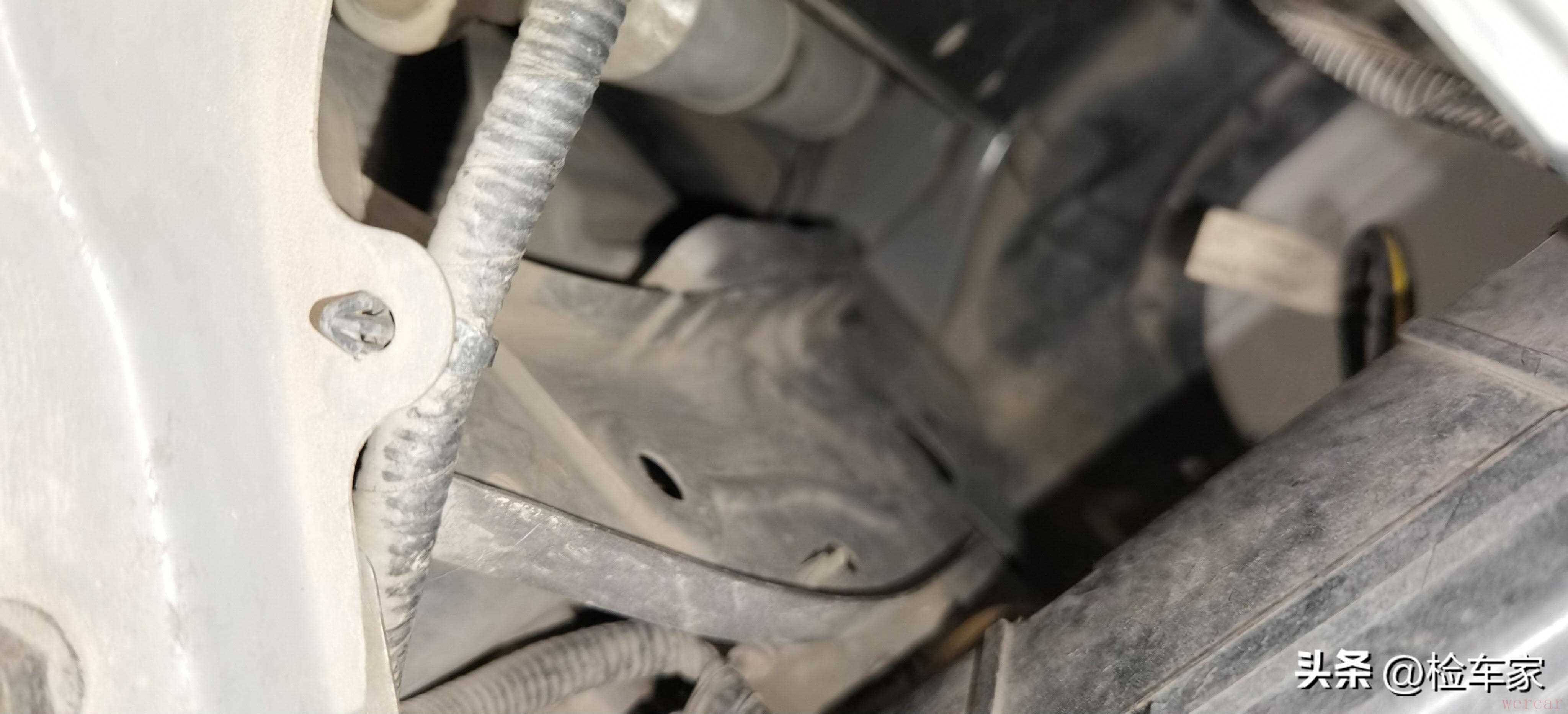 接着看减震器座和内翼子板骨架,可以看到,其平整,无拆卸,无修复,如果修复的话,那么这个年限一定会生锈的,因为他会有腻子,腻子会导致车辆变形等等!
