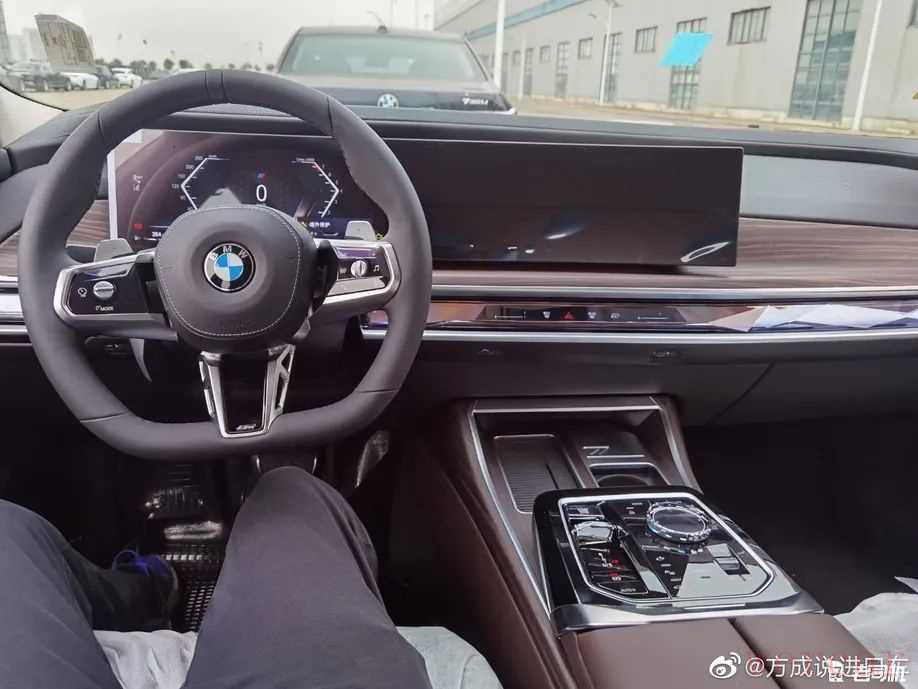 百万豪车的内饰,哪怕是最低配也不会有一丝丝的廉价感。实拍的车辆为M运动套件车型,所以内饰装配了M运动三辐方向盘、中控台疑似真皮材质包裹、木纹装饰板、钢琴烤漆面板、金属边框点缀、还有全新7系的水晶换挡机构、水晶旋钮、水晶中控装饰全都没有缺席,12.3+14.9英寸的双连屏也是标配。和高配车型几乎无差别。