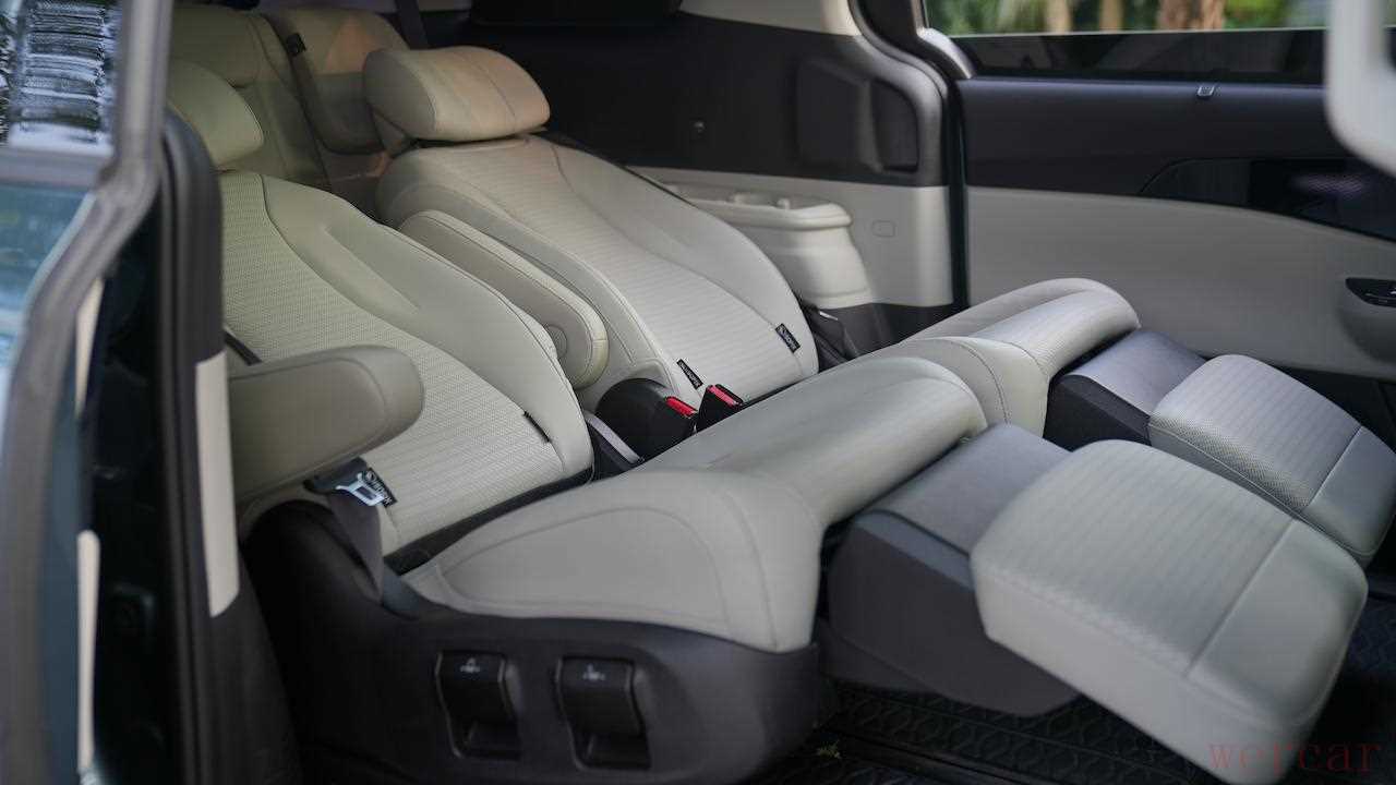 如果不是满载的情况下,那么嘉华的第二排便可以给到乘客一个十分享受的状态。嘉华的第二排座椅不仅有着电动调节,而且像腿托、座椅通风加热甚至老板键这些功能统统配齐!将前排座椅调至最前,第二排座椅调至最右,打开腿托,再让第二排座椅“躺平”,获得的乘坐感受真的令人十分享受。