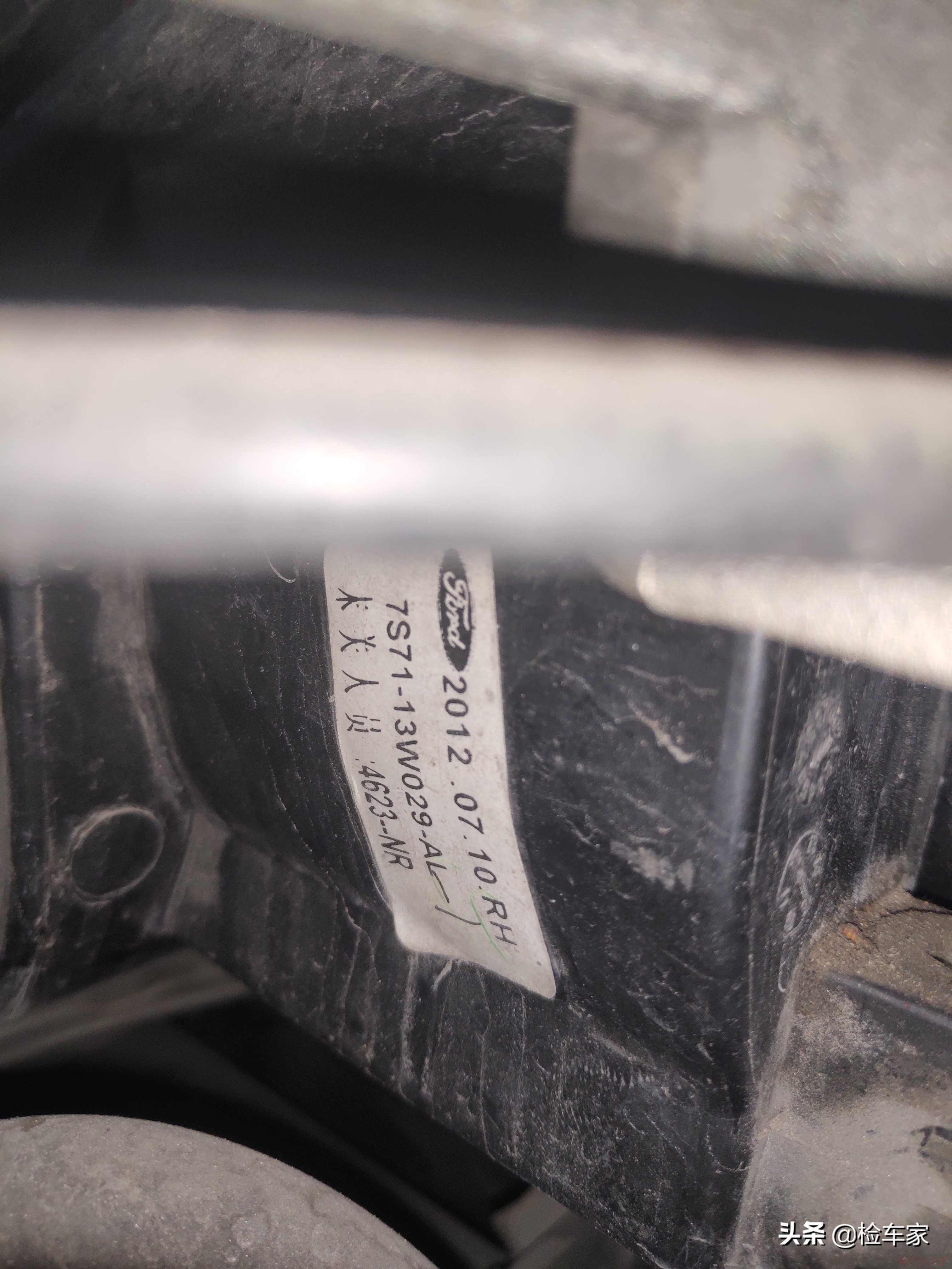 右前大灯的生产日期显示为2012年,而车子总装出厂时间是2007年,晚了5年,而且拆装痕迹明显,并且与左侧大灯的新旧成色有差别,这就不用过多解释了,右前大灯更换。