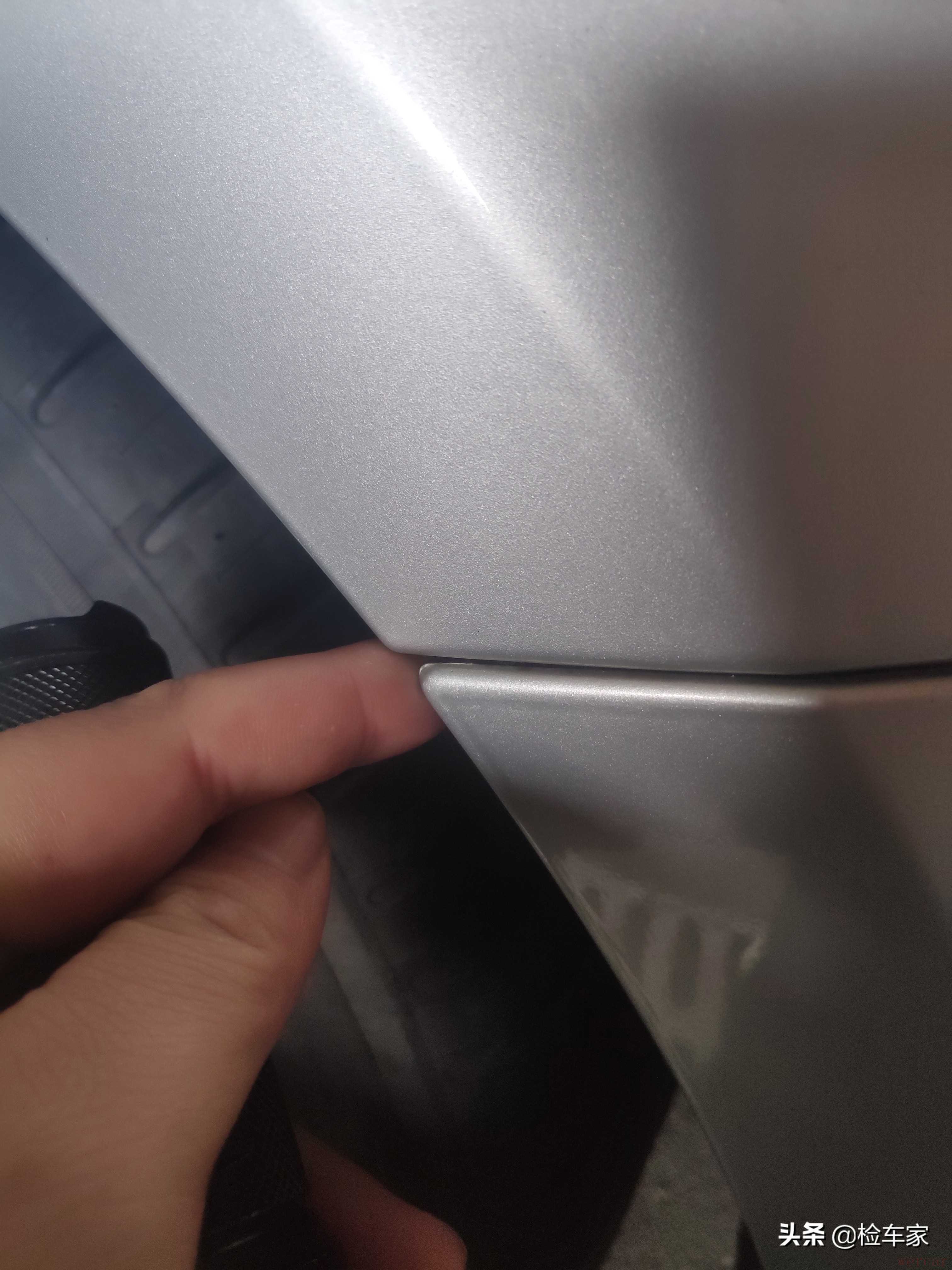 前保险杠缝隙及表面存在二次喷漆后残留的飞漆及沙眼颗粒,不过前杠固定螺丝没有拆装痕迹,内部也没有发现新旧色差,说明没有更换。前后保险杠属于碰撞高发区,磕磕碰碰再正常不过,机盖和前杠都没有更换,说明前部没有发生过特别严重的事故。