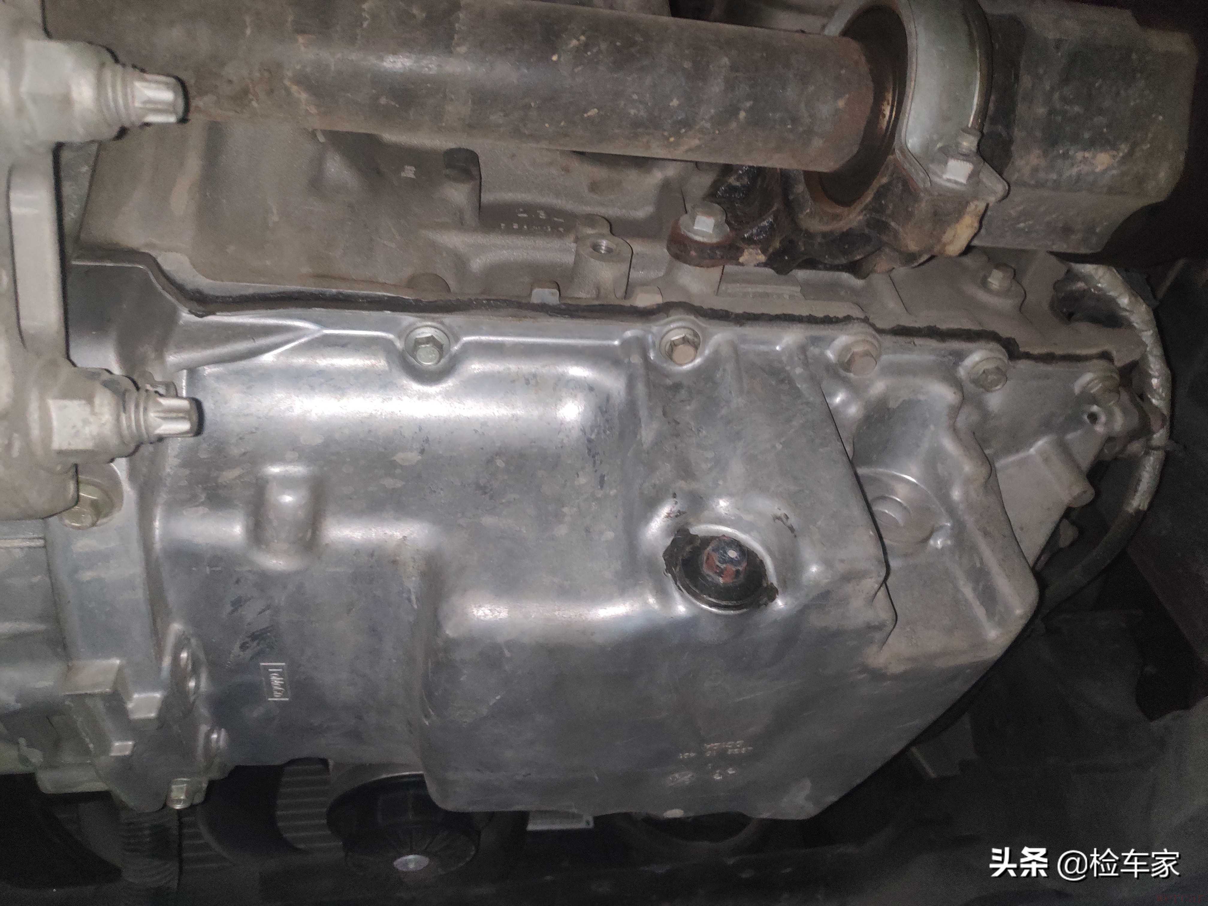 发动机油底壳有过拆装,油底壳与发动机本体结合处也存在不规整的密封胶,肉眼一看就知道是后修过的,至于修复的原因90%是漏油引起。