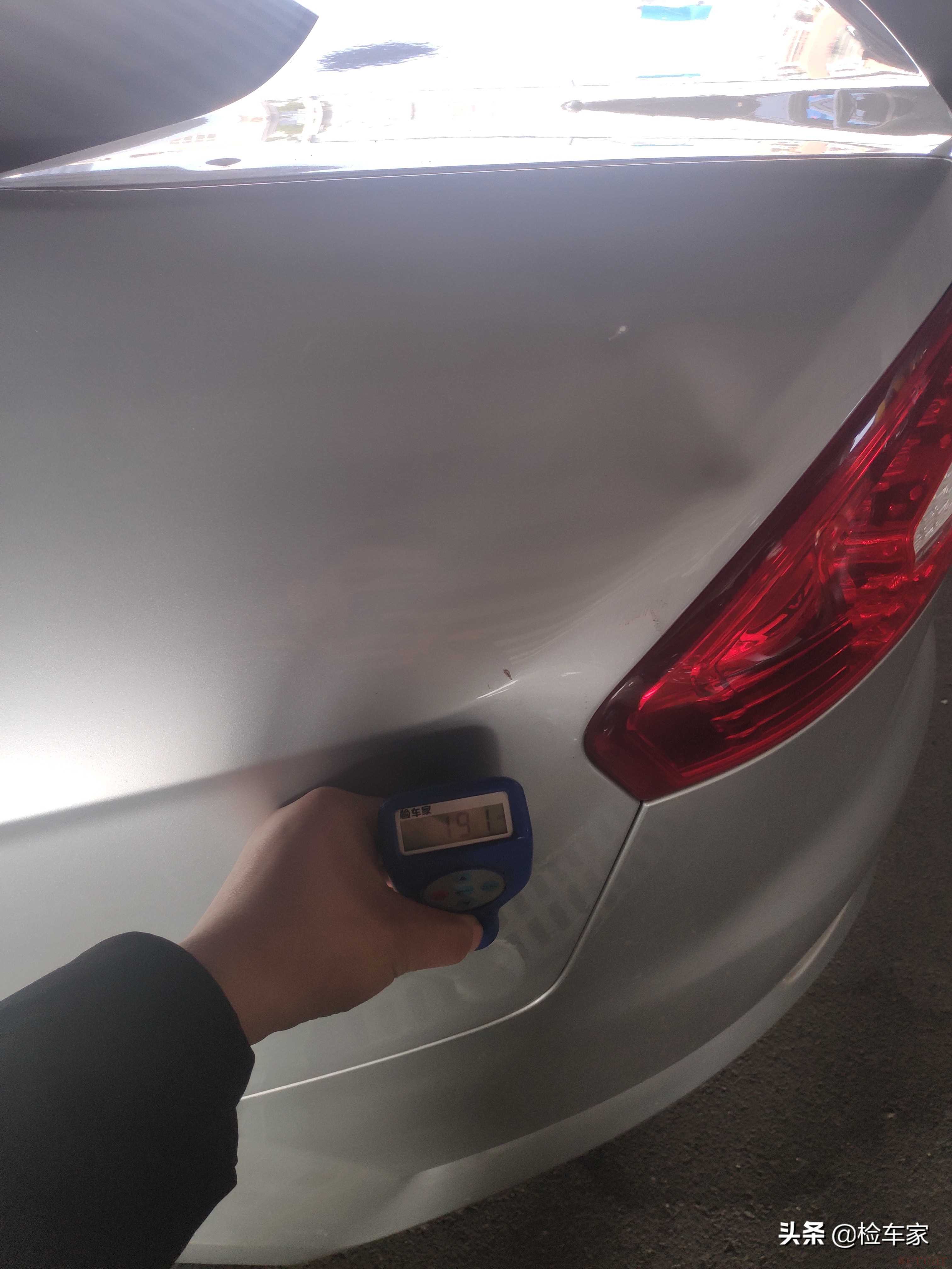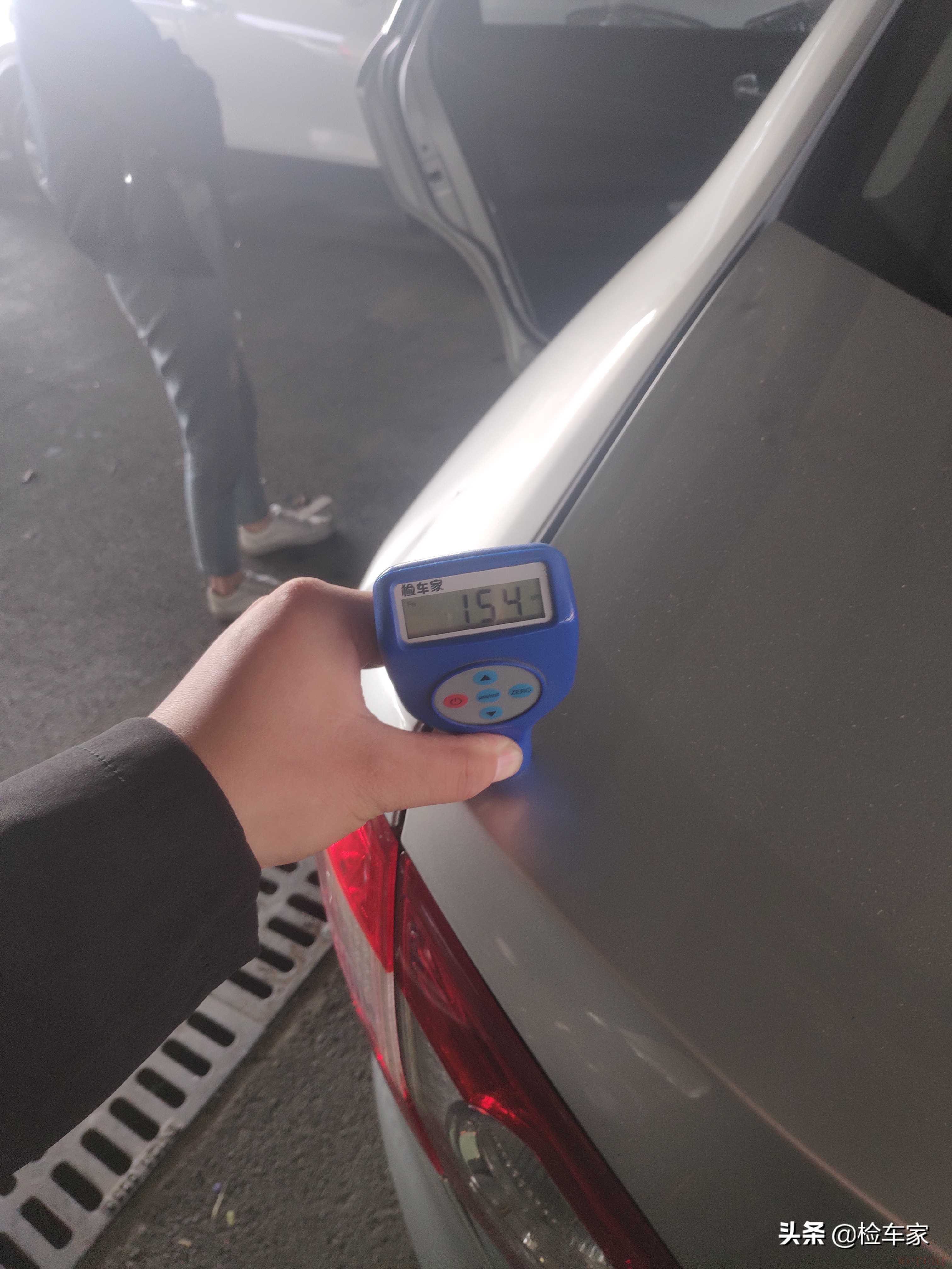 后备箱盖顶部喷漆,漆面厚度在154μm,用手触摸后盖边沿能感觉到棘手,但后盖固定螺丝并无拆卸,也就是后盖还是原厂部件,并没有更换。